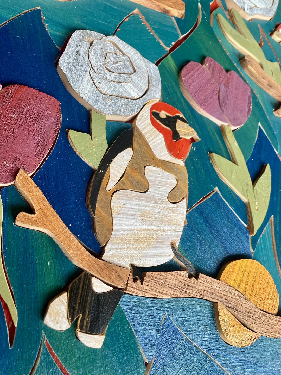 A.D. Hogan creates one-of-a-kind mosaics using reclaimed wood. Whimsical and maximal, with bright colors and playful subjects. An explosion of interest.